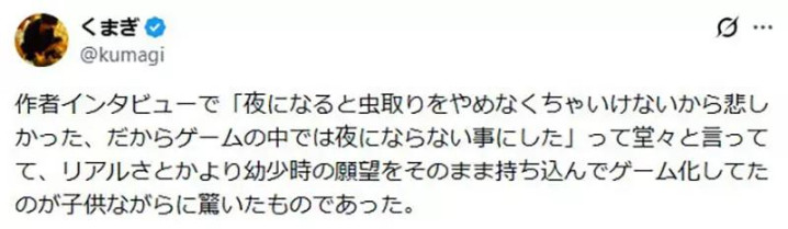 小时期握虫豸的时期,一到天黑就必须回家。这让他绝顶不宁愿,是以在领先的《宝可梦》遐想里,他一度不想加入日夜系统,我但愿孩子们能一直握下去。