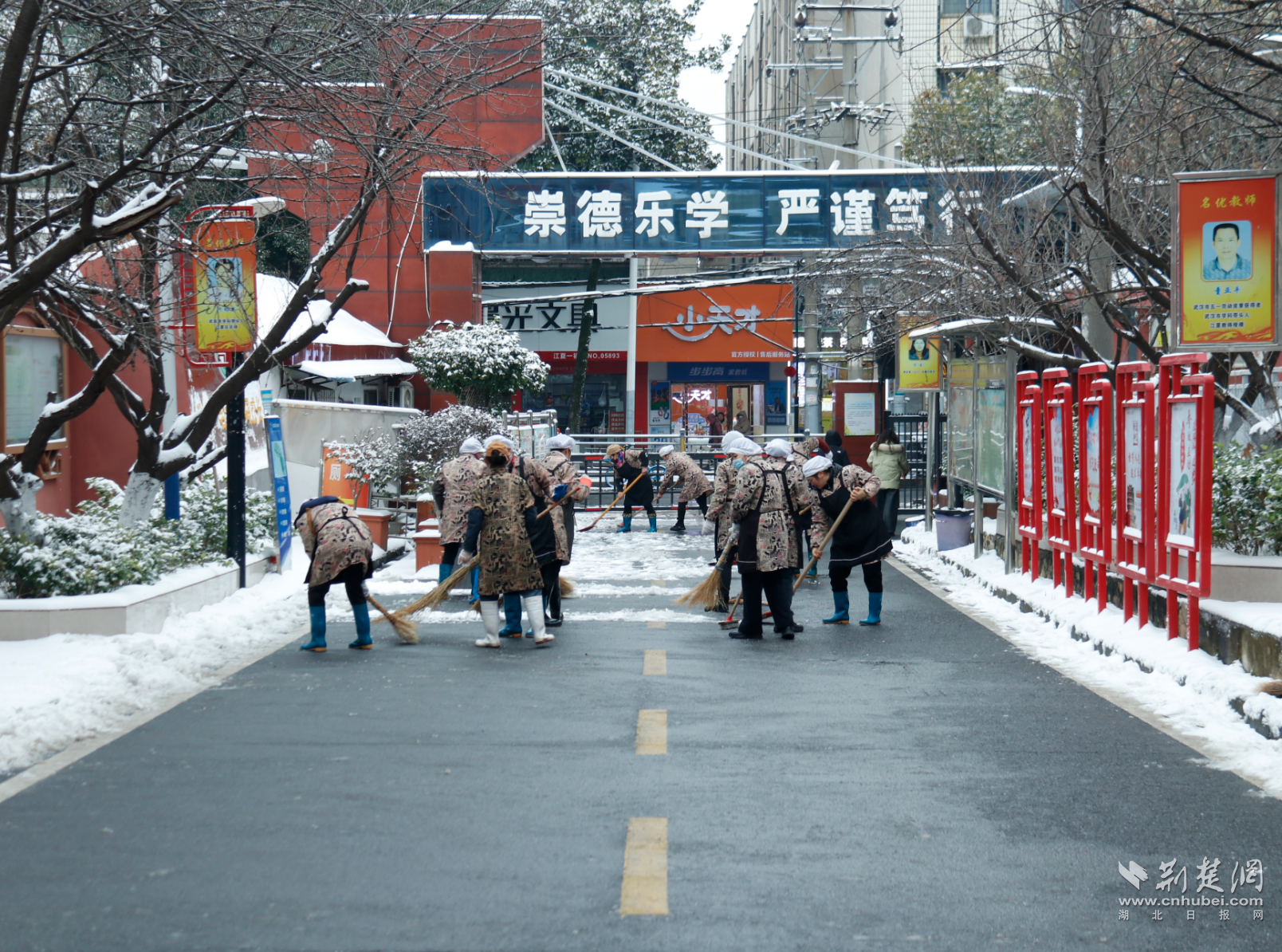 荆楚网(湖北日报网)讯(记者林杉 通信员常保青)1月20日,武汉降雪,江夏区第一低级中学的校园里粉饰了一层积雪。课间,学生们走向操场和广场,运行打雪仗、堆雪东说念主。