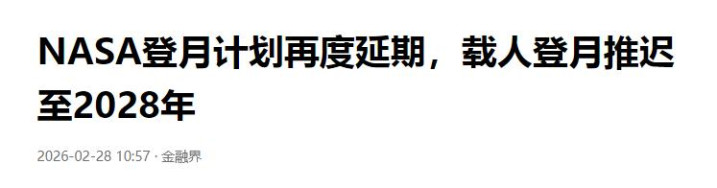 金融界:2026-02-28:NASA登月筹谋再度宽限,载东说念主登月推迟至2028年