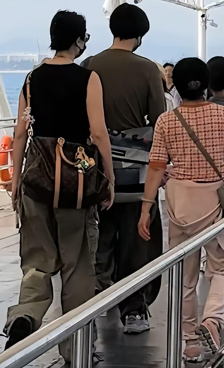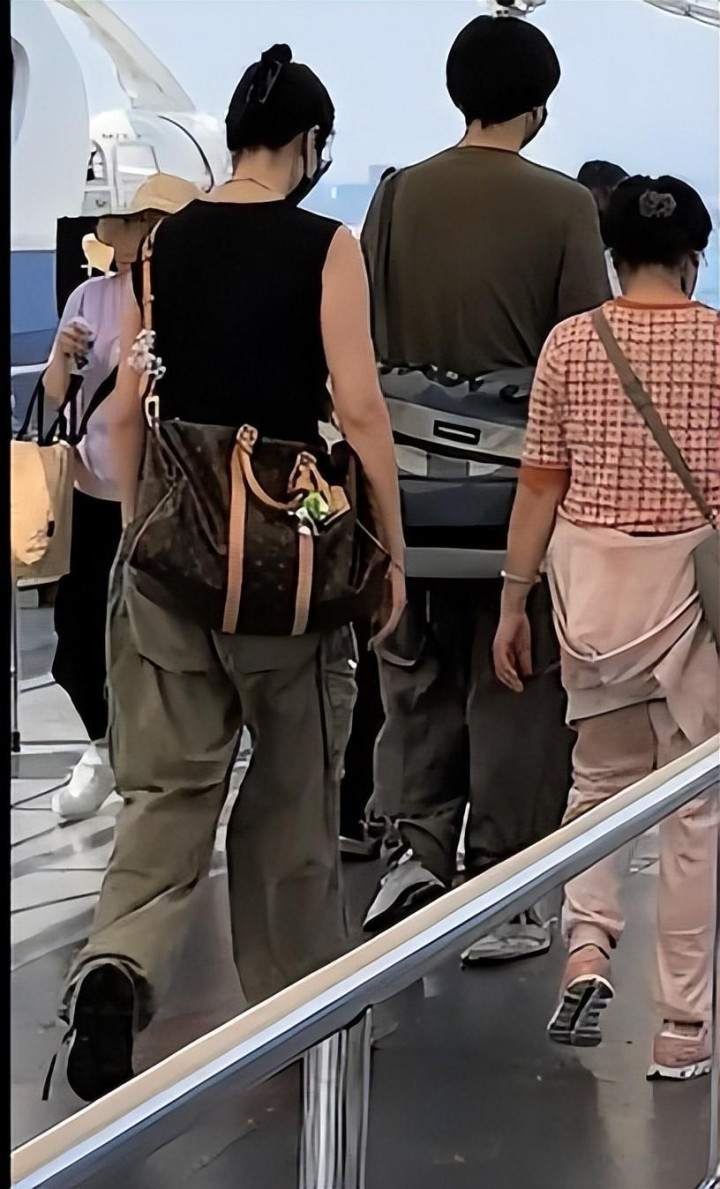 王人溪打扮的也很等闲,无袖背心配同色系工装裤,并立中性打扮,背着LV的旅行包却少量显赫气的嗅觉都莫得。