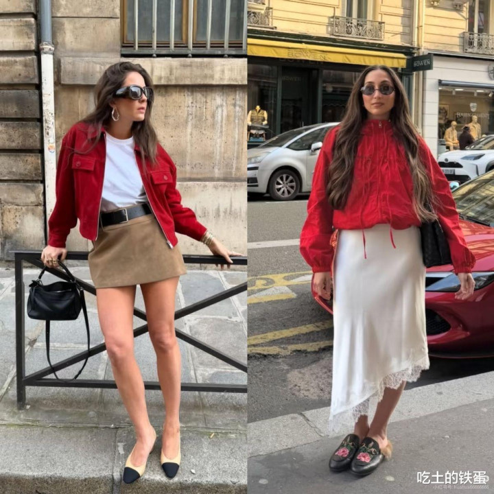 经典红色系恒久不外时!不外本年它出现的模样更情绪了,不再是全身红彤彤。更多的是小面积点缀,的确超等提气色,又不会显老气。