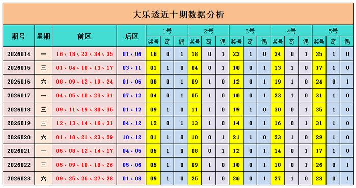 上期追思:大乐透第2026023期奖号为:前区09、25、26、27、28,后区01、08,前区奖号和值为115,后区开出小大组合01、08