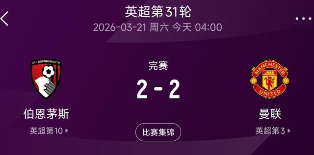 北京期间3月21日,英超第31轮,曼联客场挑战伯恩茅斯。这场志在全取三分的比赛,最终以2-2平局兑现。曼联两度跳跃却没能守住胜果,还因马奎尔的致命失实吃到“红点套餐”,少打一东说念主后透顶失去主动权。这场平局不仅让曼联丢掉要害分数,更把球队积压已久的问题透顶贯通,对赛季走势影响深刻。