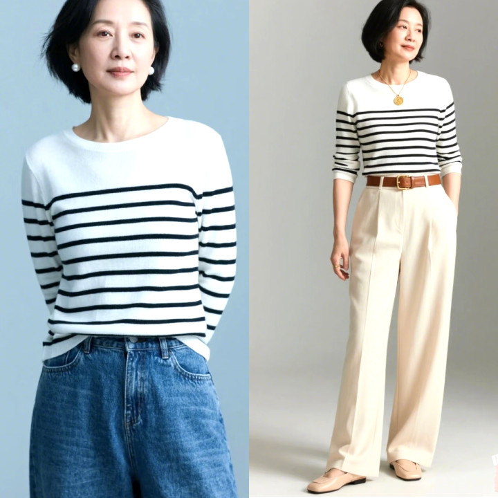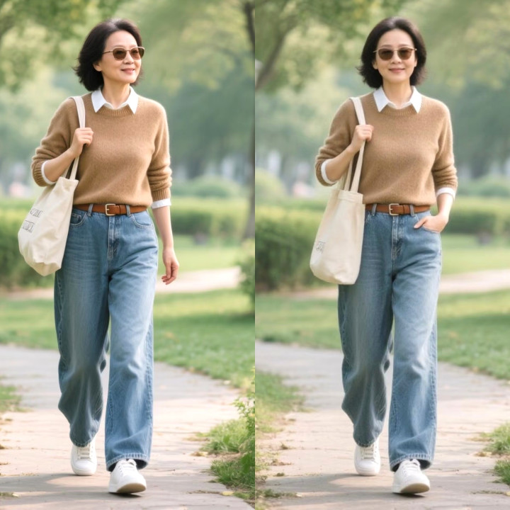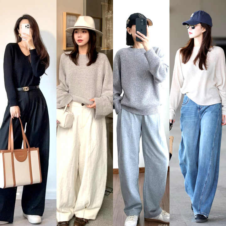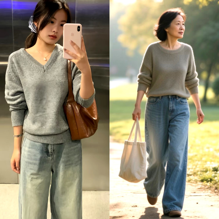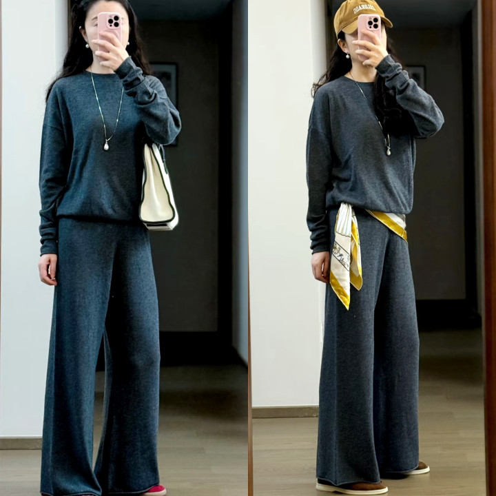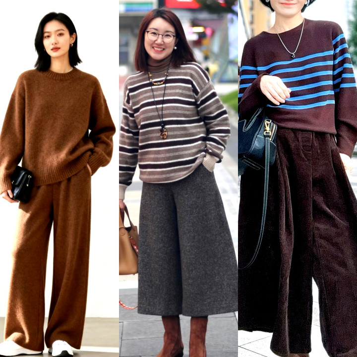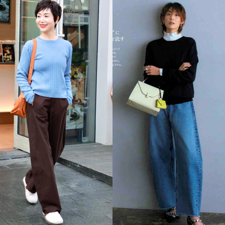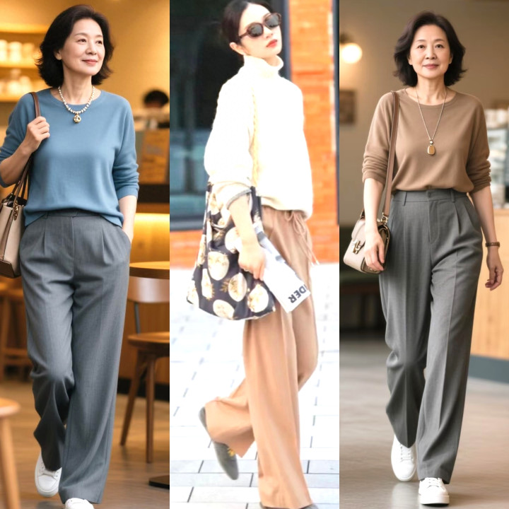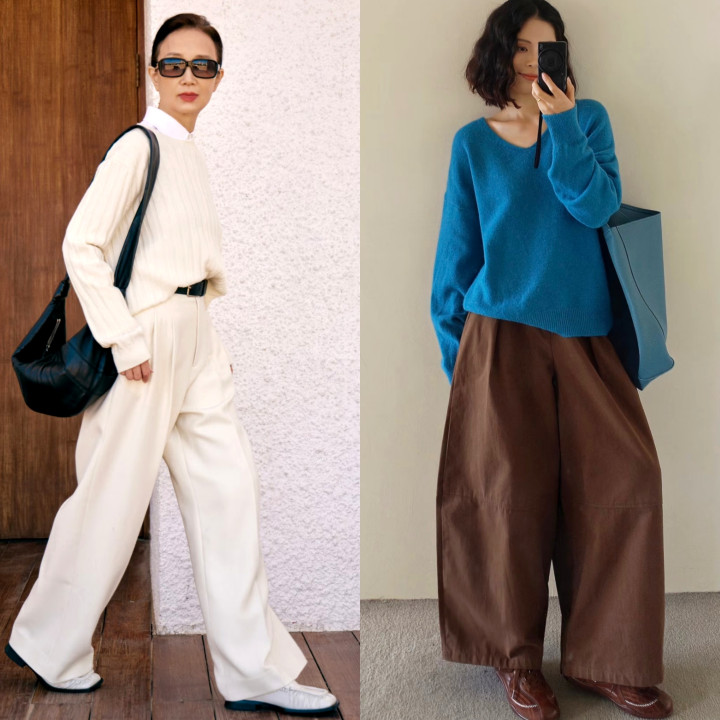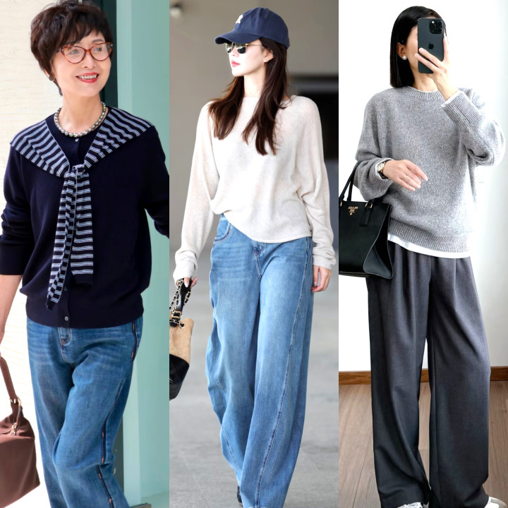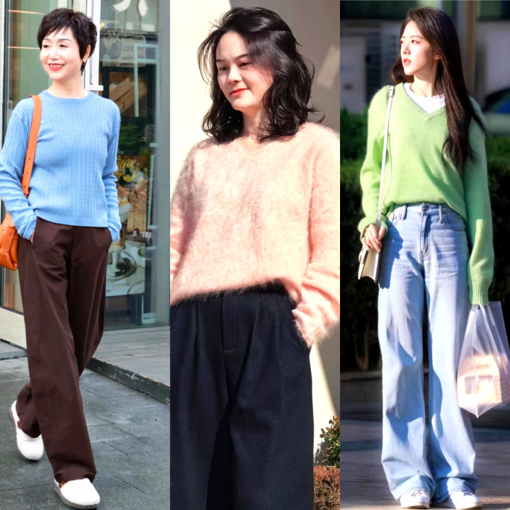是以这组搭配,成为大大都中年女性日常标配。当下恰是穿毛衣+阔腿裤的岑岭季,无论走在街头、超市、菜商场,随时能看到这么穿搭的女性。