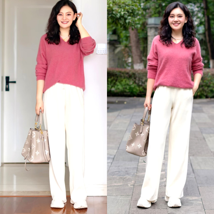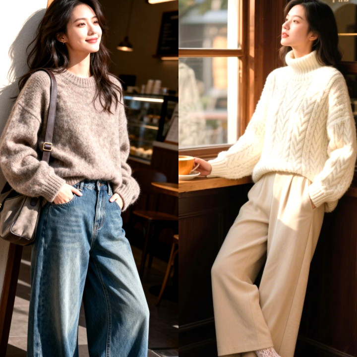 无论穿什么服装,独一款式合适才谈得上悦目,毛衣+阔腿裤也不例外。一样的服装别东说念主穿上悦目,我方穿上偶而有这种成果。是以,选拔稳健的毛衣和裤子,才是造型悦想法关键。