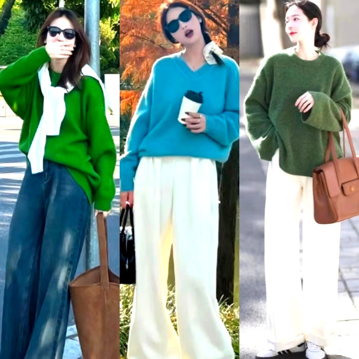 为什么好多东说念主穿毛衣+阔腿裤莫得驰念点,主若是搭配过于单调,穷乏念念路。如果在毛衣上略略动点脑子,加多点细节,立马变得悦目又文静。