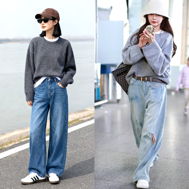 日常失业:毛衣+阔腿牛仔裤+小白鞋