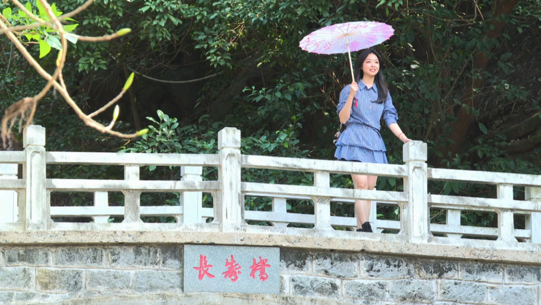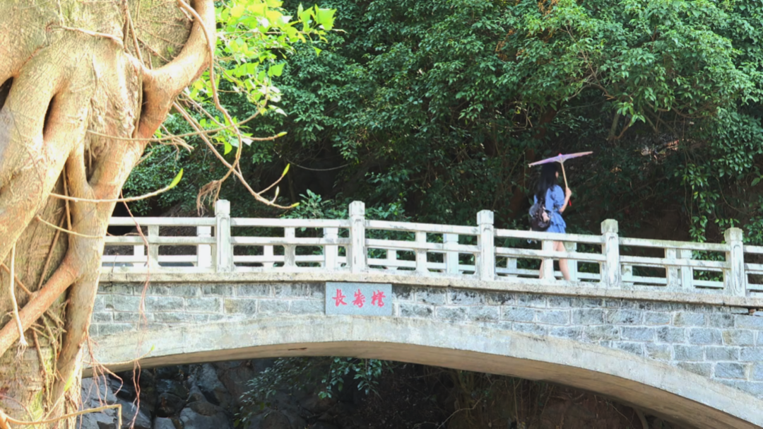 仙庙前,龟龄桥横跨溪涧,左近霏霏轻绕,古树苍苍,溪泉潺潺。这方清深幽谧的寰球间,百年香火绵延抑止,“南沙梁祝”梅郎与布娘的千年凄好意思爱情据说,在此静静流转。