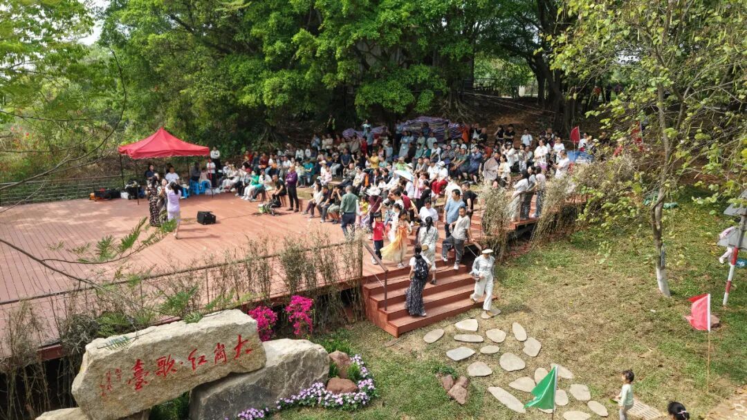 依山而建的大岗红・歌台,开云体育app与赤忱湖隔山相望,一脉红韵相承。